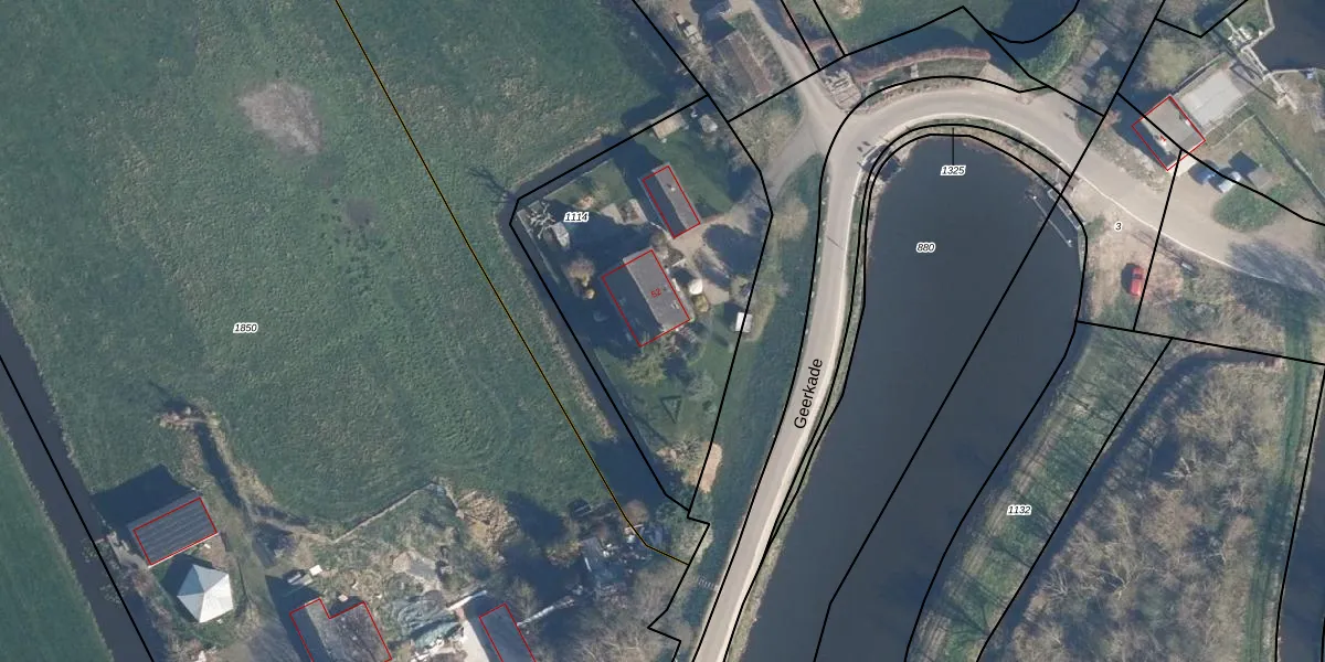 Het perceel waarop Geerkade 52 staat heeft een oppervlakte van 1350 m². Dit is een zeer groot perceel. De perceeloppervlakte wordt geregistreerd door het Kadaster. Gedetailleerde informatie over de maten van dit perceel kunt u vinden in het rapport Kadastrale kaart met maatvoering van Geerkade 52.