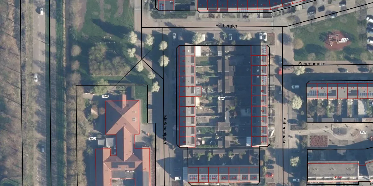Het perceel waarop Marktschipper 39 staat heeft een oppervlakte van 3520 m². Dit is een zeer groot perceel. De perceeloppervlakte wordt geregistreerd door het Kadaster. Gedetailleerde informatie over de maten van dit perceel kunt u vinden in het rapport Kadastrale kaart met maatvoering van Marktschipper 39.