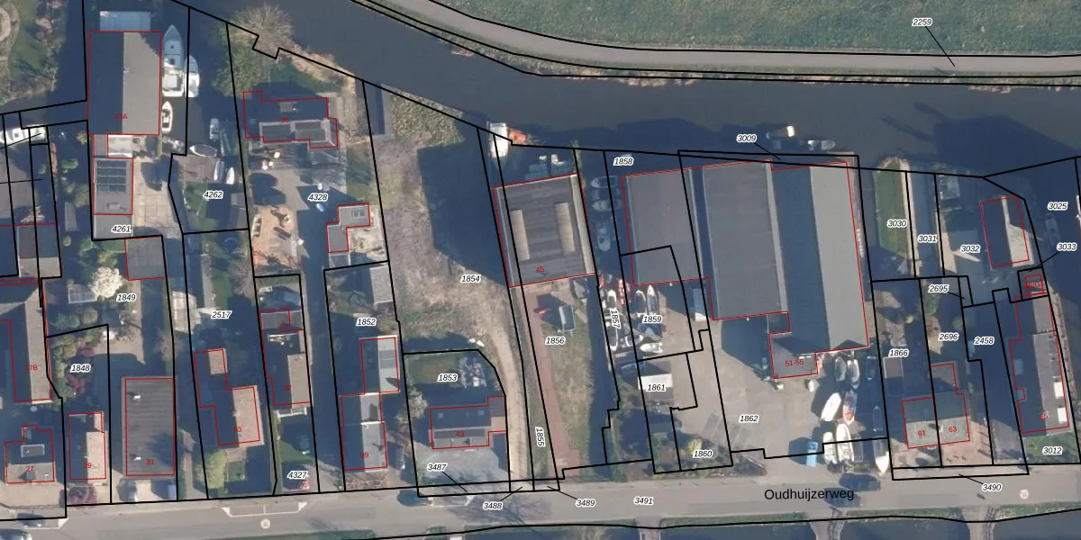 Oudhuijzerweg 45 is gelegen op kadastraal perceel WNS00A1856. Deze kadastrale aanduiding is uniek en wordt gebruikt door het Kadaster om eigendomsrechten en andere zakelijke rechten vast te leggen. Het perceel maakt onderdeel uit van de kadastrale gemeente Wilnis.