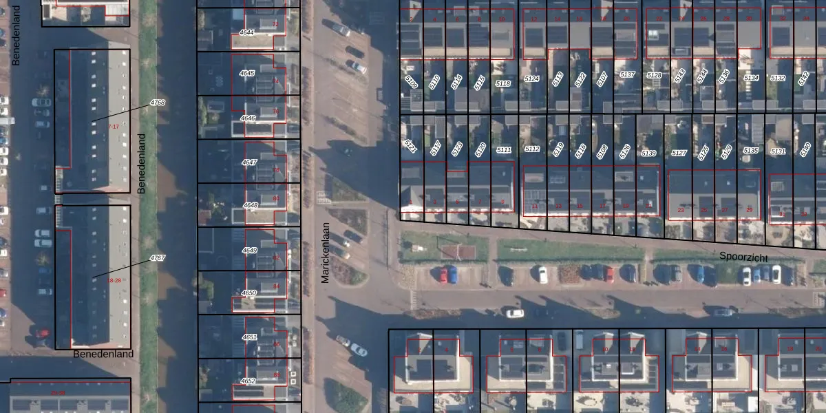 Spoorzicht 1 is gelegen op kadastraal perceel WNS00A5121. Deze kadastrale aanduiding is uniek en wordt gebruikt door het Kadaster om eigendomsrechten en andere zakelijke rechten vast te leggen. Het perceel maakt onderdeel uit van de kadastrale gemeente Wilnis.