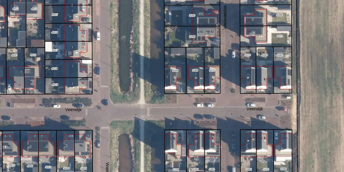 Het perceel waarop Veendijk 29 staat heeft een oppervlakte van 342 m². Dit is een groot perceel. De perceeloppervlakte wordt geregistreerd door het Kadaster. Gedetailleerde informatie over de maten van dit perceel kunt u vinden in het rapport Kadastrale kaart met maatvoering van Veendijk 29.