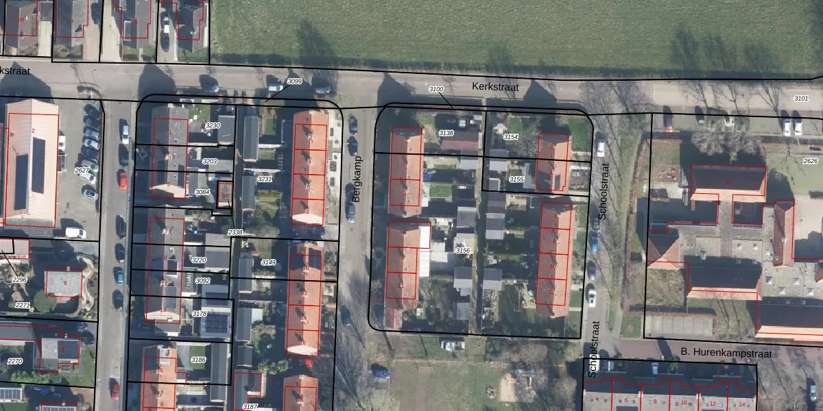 Het perceel waarop Bergkamp 5 staat heeft een oppervlakte van 2030 m². Dit is een zeer groot perceel. De perceeloppervlakte wordt geregistreerd door het Kadaster. Gedetailleerde informatie over de maten van dit perceel kunt u vinden in het rapport Kadastrale kaart met maatvoering van Bergkamp 5.