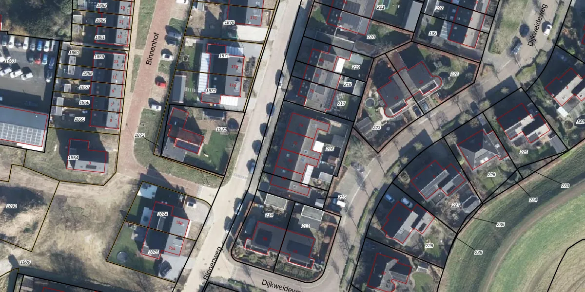 Binnenweg 72 is gelegen op kadastraal perceel VOO00T216. Deze kadastrale aanduiding is uniek en wordt gebruikt door het Kadaster om eigendomsrechten en andere zakelijke rechten vast te leggen. Het perceel maakt onderdeel uit van de kadastrale gemeente Voorst.