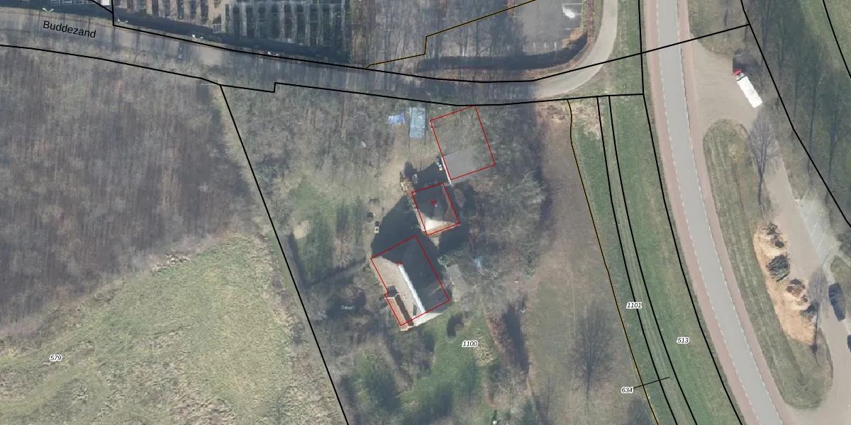 Het perceel waarop Buddezand 30 staat heeft een oppervlakte van 8762 m². Dit is een zeer groot perceel. De perceeloppervlakte wordt geregistreerd door het Kadaster. Gedetailleerde informatie over de maten van dit perceel kunt u vinden in het rapport Kadastrale kaart met maatvoering van Buddezand 30.