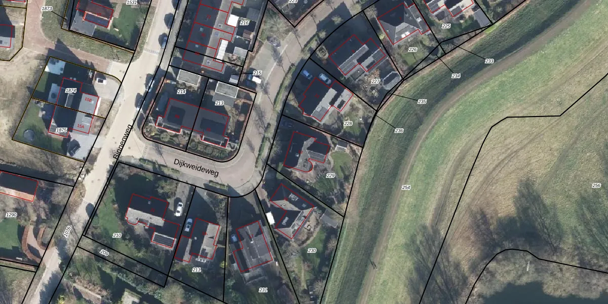 Dijkweideweg 13 is gelegen op kadastraal perceel VOO00T229. Deze kadastrale aanduiding is uniek en wordt gebruikt door het Kadaster om eigendomsrechten en andere zakelijke rechten vast te leggen. Het perceel maakt onderdeel uit van de kadastrale gemeente Voorst.