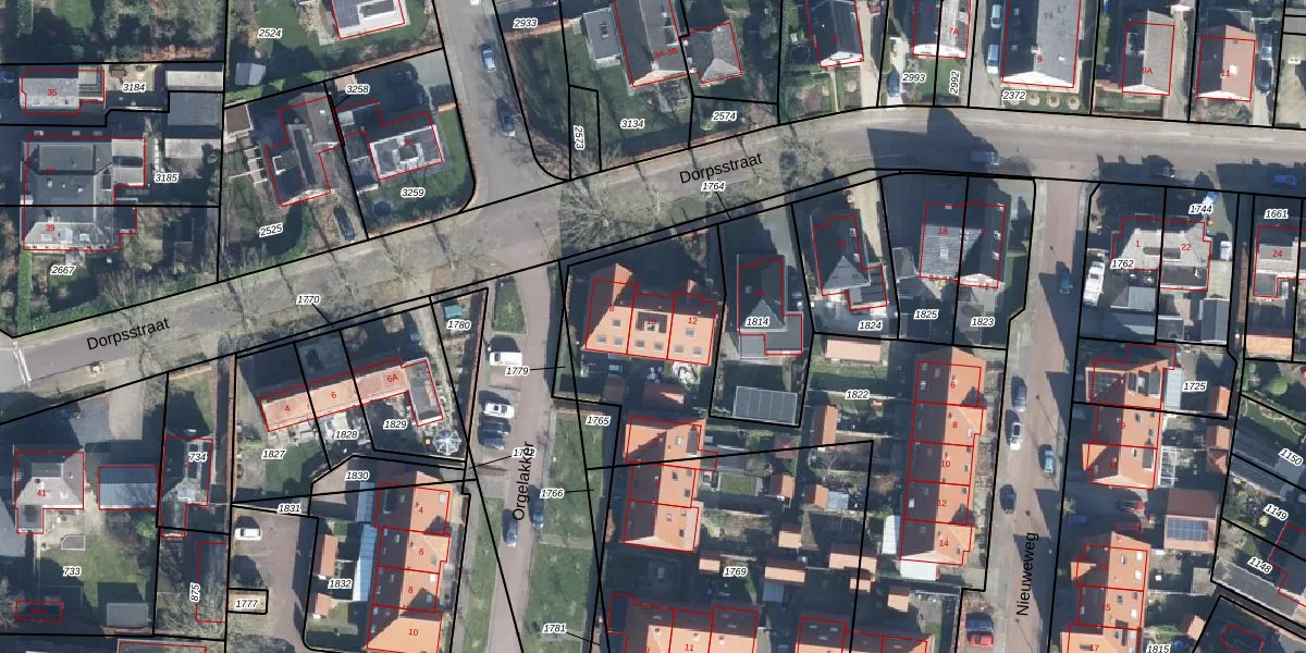 Het perceel waarop Dorpsstraat 10 staat heeft een oppervlakte van 1969 m². Dit is een zeer groot perceel. De perceeloppervlakte wordt geregistreerd door het Kadaster. Gedetailleerde informatie over de maten van dit perceel kunt u vinden in het rapport Kadastrale kaart met maatvoering van Dorpsstraat 10.