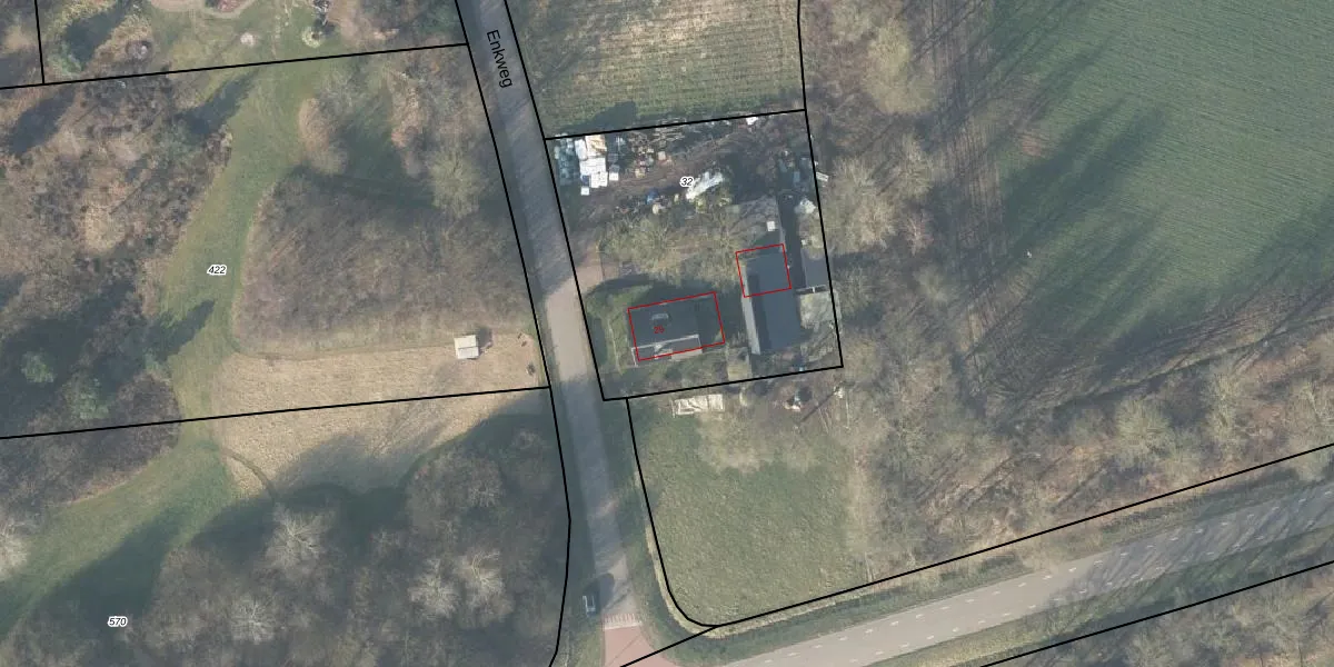 Enkweg 29 is gelegen op kadastraal perceel VOO00S32. Deze kadastrale aanduiding is uniek en wordt gebruikt door het Kadaster om eigendomsrechten en andere zakelijke rechten vast te leggen. Het perceel maakt onderdeel uit van de kadastrale gemeente Voorst.