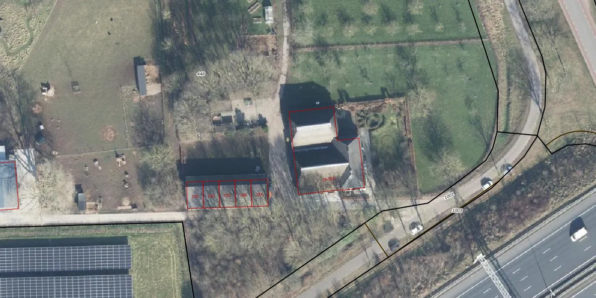 Het adres is gelegen op perceel 448 in de sectie S en de kadastrale gemeente Voorst. De kadastrale aanduiding is aldus VOO00-S-448. De gemiddelde perceeloppervlakte in de kadastrale gemeente Voorst is 1,0 ha. Dit perceel is met zijn 1,5 ha dus groter dan gemiddeld. Het grootste perceel in de kadastrale gemeente is 94,4 ha. Het kleinste perceel heeft een oppervlakte van 0 m². Op het perceel zijn 10 adressen aanwezig. De huidige grenzen van het perceel zijn digitaal in de Basisregistratie Kadaster (BRK) geregistreerd op 28-02-2019.
