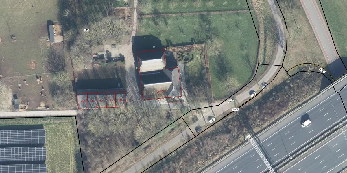 Holtweg 25-A is gelegen op kadastraal perceel VOO00S448. Deze kadastrale aanduiding is uniek en wordt gebruikt door het Kadaster om eigendomsrechten en andere zakelijke rechten vast te leggen. Het perceel maakt onderdeel uit van de kadastrale gemeente Voorst.