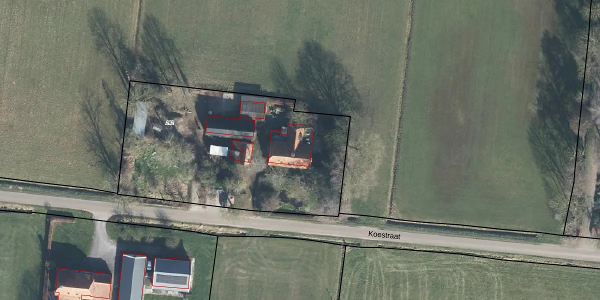 Koestraat 6 is gelegen op kadastraal perceel VOO00Q262. Deze kadastrale aanduiding is uniek en wordt gebruikt door het Kadaster om eigendomsrechten en andere zakelijke rechten vast te leggen. Het perceel maakt onderdeel uit van de kadastrale gemeente Voorst.