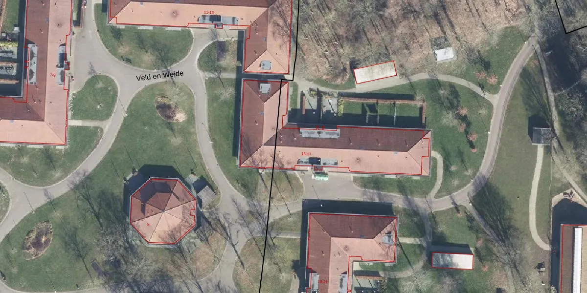 Het perceel waarop Veld en Weide 15 staat heeft een oppervlakte van 12,3 ha. Dit is een zeer groot perceel. De perceeloppervlakte wordt geregistreerd door het Kadaster. Gedetailleerde informatie over de maten van dit perceel kunt u vinden in het rapport Kadastrale kaart met maatvoering van Veld en Weide 15.