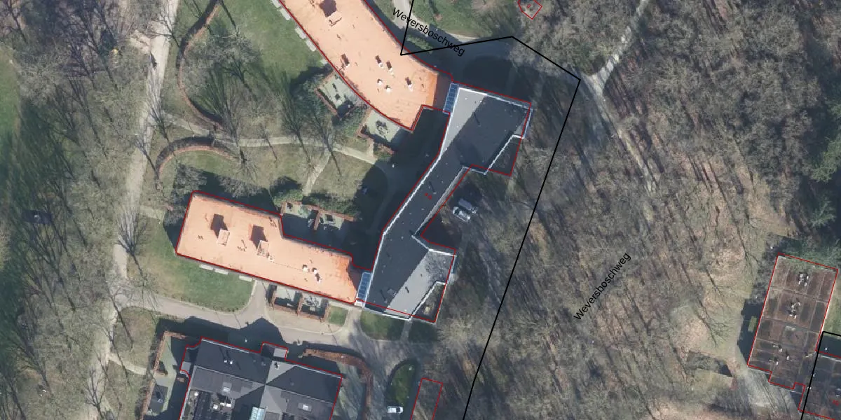 Het perceel waarop Weversboschweg 4 staat heeft een oppervlakte van 14,7 ha. Dit is een zeer groot perceel. De perceeloppervlakte wordt geregistreerd door het Kadaster. Gedetailleerde informatie over de maten van dit perceel kunt u vinden in het rapport Kadastrale kaart met maatvoering van Weversboschweg 4.
