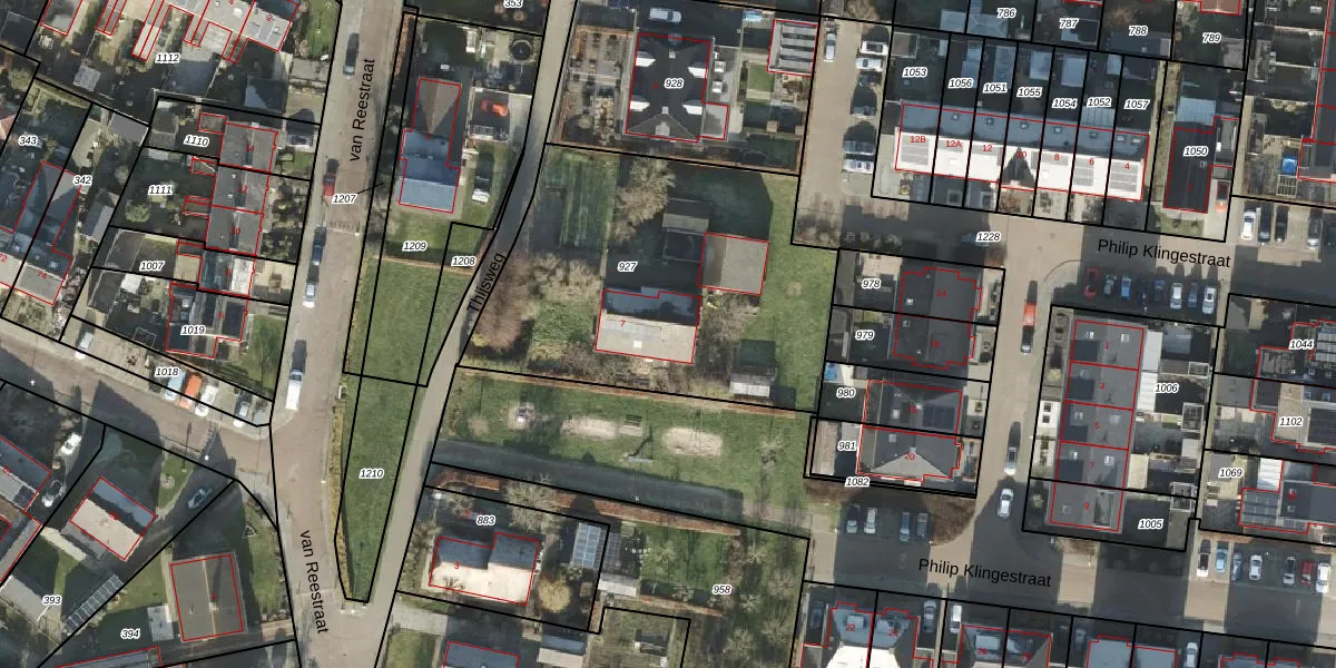 Het perceel waarop Thijsweg 7 staat heeft een oppervlakte van 1644 m². Dit is een zeer groot perceel. De perceeloppervlakte wordt geregistreerd door het Kadaster. Gedetailleerde informatie over de maten van dit perceel kunt u vinden in het rapport Kadastrale kaart met maatvoering van Thijsweg 7.
