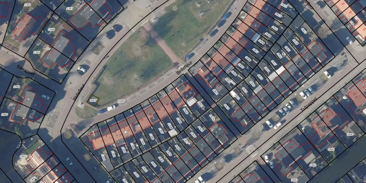 Het perceel waarop Bellefleur 22 staat heeft een oppervlakte van 218 m². Dit is een middelgroot perceel. De perceeloppervlakte wordt geregistreerd door het Kadaster. Gedetailleerde informatie over de maten van dit perceel kunt u vinden in het rapport Kadastrale kaart met maatvoering van Bellefleur 22.
