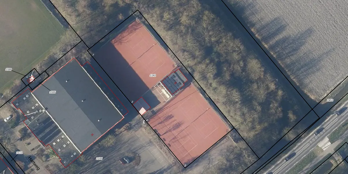 Het perceel waarop Hartweg 39 staat heeft een oppervlakte van 3240 m². Dit is een zeer groot perceel. De perceeloppervlakte wordt geregistreerd door het Kadaster. Gedetailleerde informatie over de maten van dit perceel kunt u vinden in het rapport Kadastrale kaart met maatvoering van Hartweg 39.