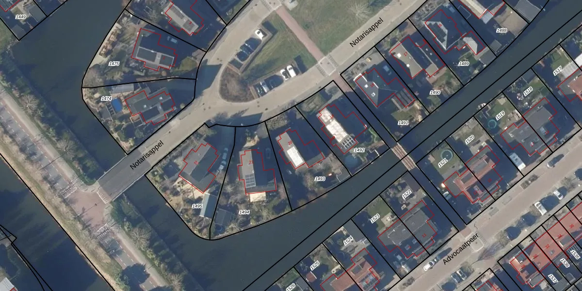 Notarisappel 20 is gelegen op kadastraal perceel NDP02C1493. Deze kadastrale aanduiding is uniek en wordt gebruikt door het Kadaster om eigendomsrechten en andere zakelijke rechten vast te leggen. Het perceel maakt onderdeel uit van de kadastrale gemeente Niedorp.