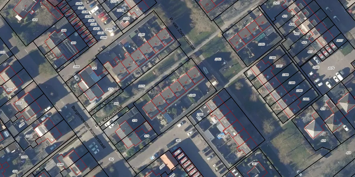 Het perceel waarop P.J. Korverstraat 8 staat heeft een oppervlakte van 975 m². Dit is een groot perceel. De perceeloppervlakte wordt geregistreerd door het Kadaster. Gedetailleerde informatie over de maten van dit perceel kunt u vinden in het rapport Kadastrale kaart met maatvoering van P.J. Korverstraat 8.