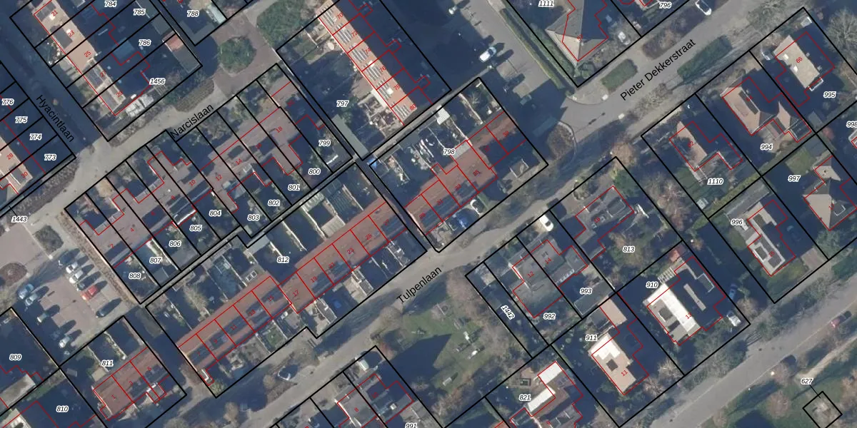 Het perceel waarop Tulpenlaan 29 staat heeft een oppervlakte van 852 m². Dit is een groot perceel. De perceeloppervlakte wordt geregistreerd door het Kadaster. Gedetailleerde informatie over de maten van dit perceel kunt u vinden in het rapport Kadastrale kaart met maatvoering van Tulpenlaan 29.
