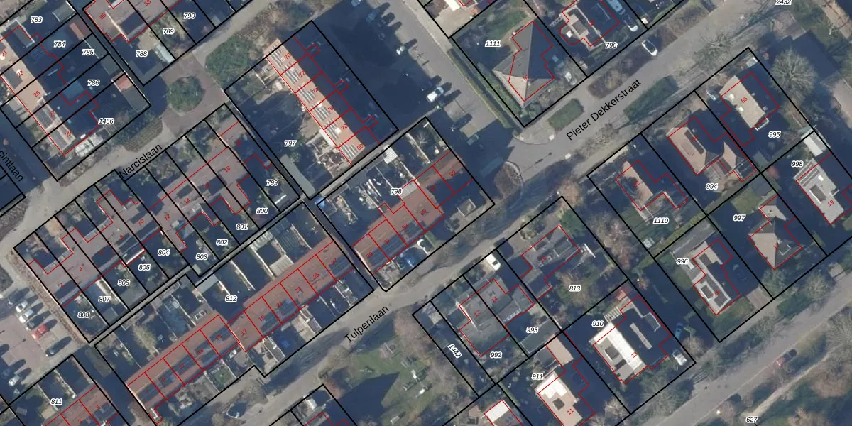 Het perceel waarop Tulpenlaan 35 staat heeft een oppervlakte van 852 m². Dit is een groot perceel. De perceeloppervlakte wordt geregistreerd door het Kadaster. Gedetailleerde informatie over de maten van dit perceel kunt u vinden in het rapport Kadastrale kaart met maatvoering van Tulpenlaan 35.