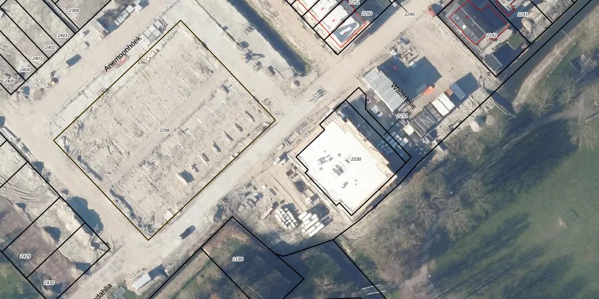 Het perceel waarop Waterlelie 33 staat heeft een oppervlakte van 3,1 ha. Dit is een zeer groot perceel. De perceeloppervlakte wordt geregistreerd door het Kadaster. Gedetailleerde informatie over de maten van dit perceel kunt u vinden in het rapport Kadastrale kaart met maatvoering van Waterlelie 33.