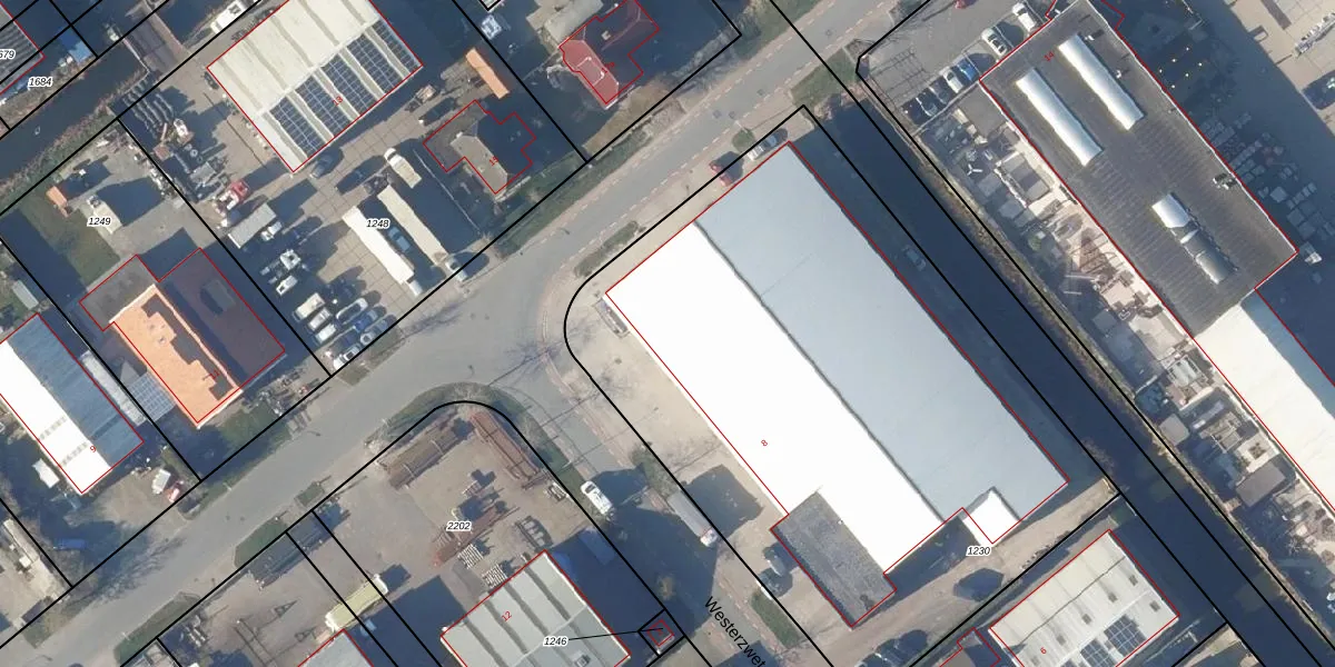 Het perceel waarop Westerzwet 8 staat heeft een oppervlakte van 3722 m². Dit is een zeer groot perceel. De perceeloppervlakte wordt geregistreerd door het Kadaster. Gedetailleerde informatie over de maten van dit perceel kunt u vinden in het rapport Kadastrale kaart met maatvoering van Westerzwet 8.