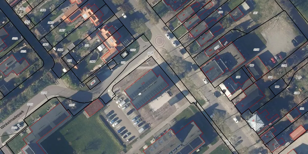 Het perceel waarop Winkelmadepark 2-d staat heeft een oppervlakte van 2,3 ha. Dit is een zeer groot perceel. De perceeloppervlakte wordt geregistreerd door het Kadaster. Gedetailleerde informatie over de maten van dit perceel kunt u vinden in het rapport Kadastrale kaart met maatvoering van Winkelmadepark 2-d.