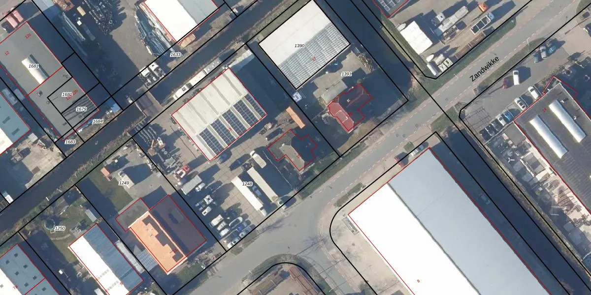 Het perceel waarop Zandwikke 15 staat heeft een oppervlakte van 2500 m². Dit is een zeer groot perceel. De perceeloppervlakte wordt geregistreerd door het Kadaster. Gedetailleerde informatie over de maten van dit perceel kunt u vinden in het rapport Kadastrale kaart met maatvoering van Zandwikke 15.