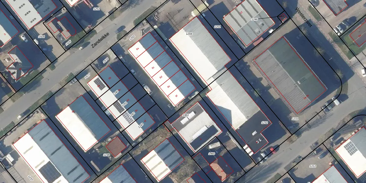 Het perceel waarop Zandwikke 8-f staat heeft een oppervlakte van 1250 m². Dit is een zeer groot perceel. De perceeloppervlakte wordt geregistreerd door het Kadaster. Gedetailleerde informatie over de maten van dit perceel kunt u vinden in het rapport Kadastrale kaart met maatvoering van Zandwikke 8-f.