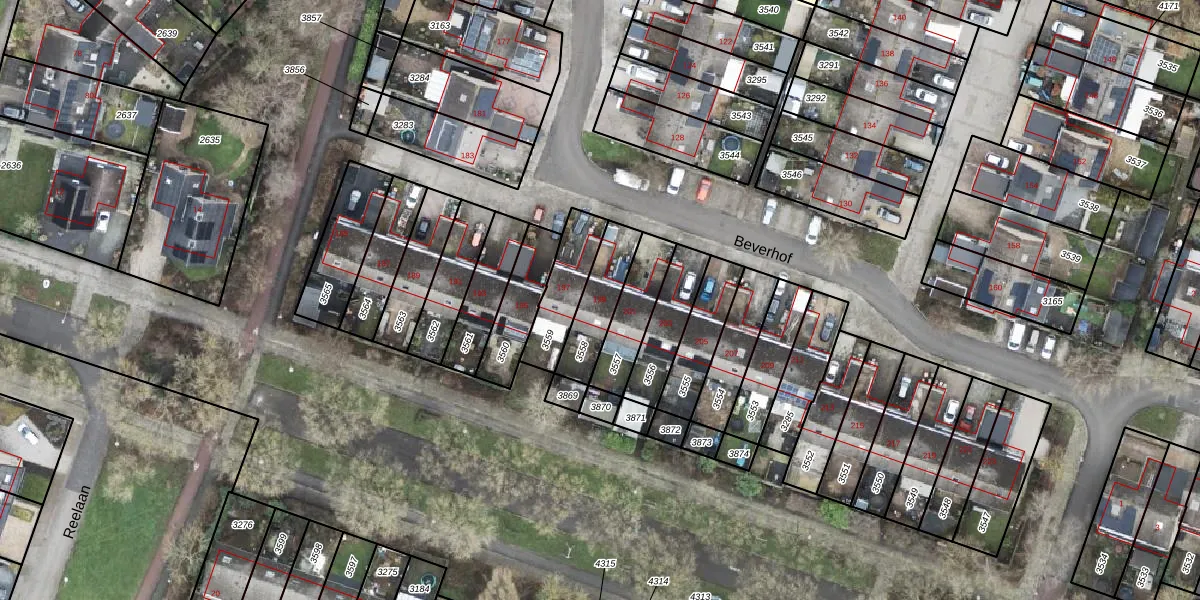 Het perceel waarop Beverhof 199 staat heeft een oppervlakte van 162 m². Dit is een middelgroot perceel. De perceeloppervlakte wordt geregistreerd door het Kadaster. Gedetailleerde informatie over de maten van dit perceel kunt u vinden in het rapport Kadastrale kaart met maatvoering van Beverhof 199.