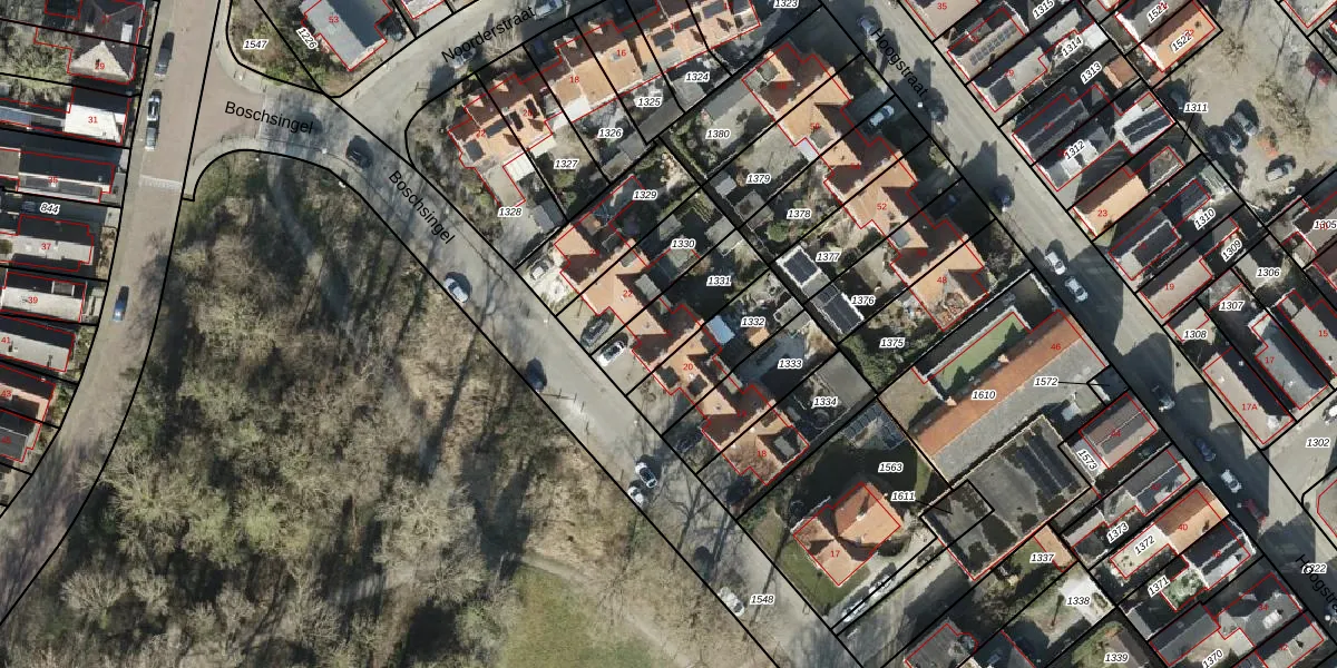 Het perceel waarop Boschsingel 21 staat heeft een oppervlakte van 231 m². Dit is een middelgroot perceel. De perceeloppervlakte wordt geregistreerd door het Kadaster. Gedetailleerde informatie over de maten van dit perceel kunt u vinden in het rapport Kadastrale kaart met maatvoering van Boschsingel 21.