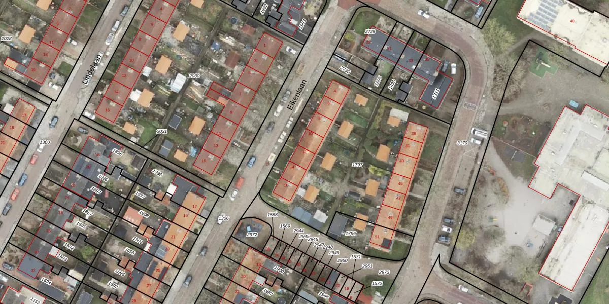 Het perceel waarop Eikenlaan 12 staat heeft een oppervlakte van 2150 m². Dit is een zeer groot perceel. De perceeloppervlakte wordt geregistreerd door het Kadaster. Gedetailleerde informatie over de maten van dit perceel kunt u vinden in het rapport Kadastrale kaart met maatvoering van Eikenlaan 12.