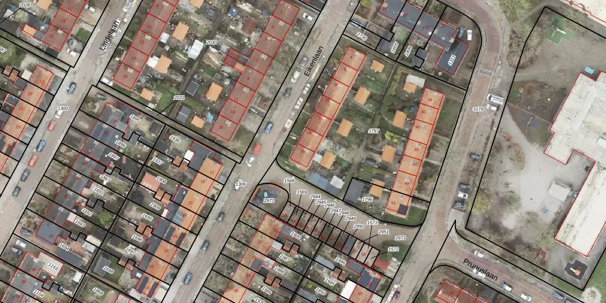 Het perceel waarop Eikenlaan 16 staat heeft een oppervlakte van 2150 m². Dit is een zeer groot perceel. De perceeloppervlakte wordt geregistreerd door het Kadaster. Gedetailleerde informatie over de maten van dit perceel kunt u vinden in het rapport Kadastrale kaart met maatvoering van Eikenlaan 16.