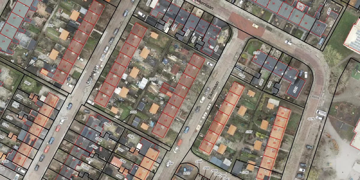 Het perceel waarop Eikenlaan 7 staat heeft een oppervlakte van 2942 m². Dit is een zeer groot perceel. De perceeloppervlakte wordt geregistreerd door het Kadaster. Gedetailleerde informatie over de maten van dit perceel kunt u vinden in het rapport Kadastrale kaart met maatvoering van Eikenlaan 7.