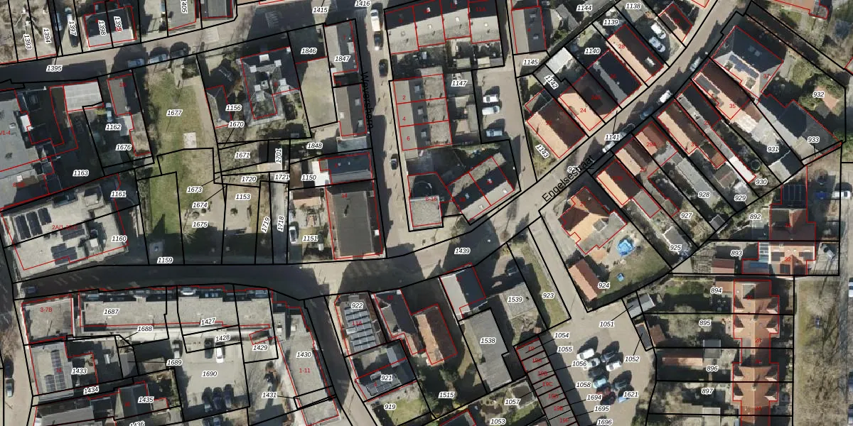 Het perceel waarop Engelsestraat 16 staat heeft een oppervlakte van 1247 m². Dit is een zeer groot perceel. De perceeloppervlakte wordt geregistreerd door het Kadaster. Gedetailleerde informatie over de maten van dit perceel kunt u vinden in het rapport Kadastrale kaart met maatvoering van Engelsestraat 16.