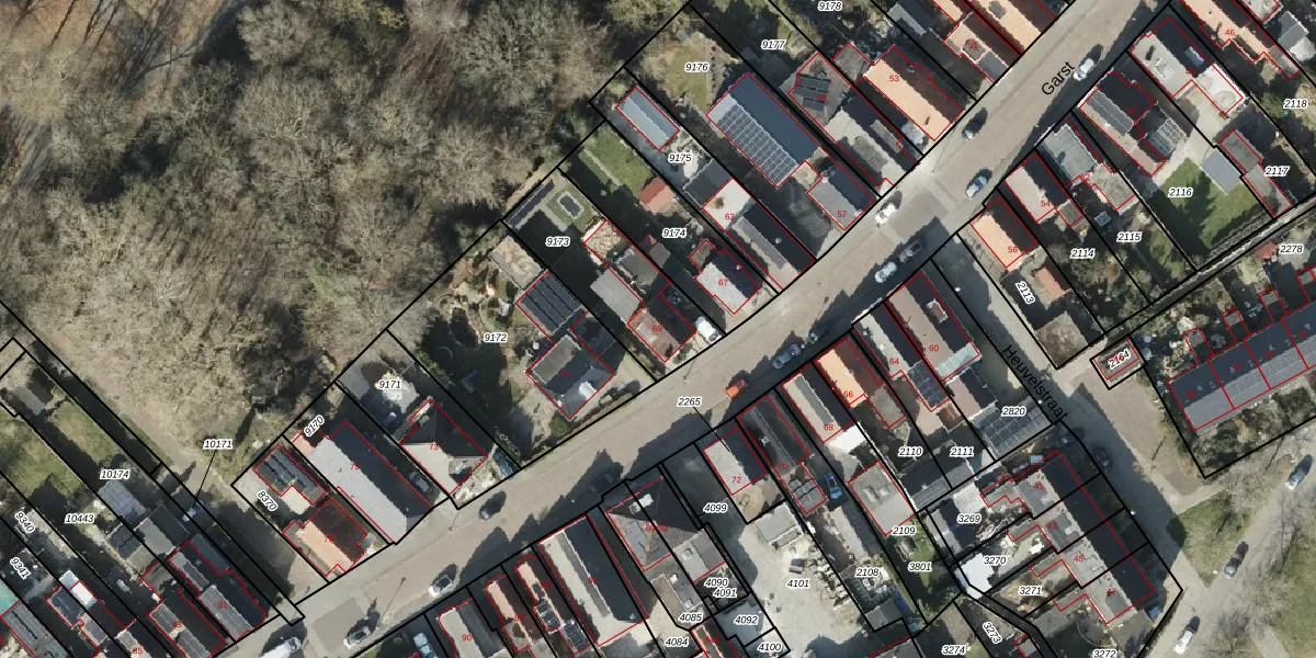 Het perceel waarop Garst 69 staat heeft een oppervlakte van 415 m². Dit is een groot perceel. De perceeloppervlakte wordt geregistreerd door het Kadaster. Gedetailleerde informatie over de maten van dit perceel kunt u vinden in het rapport Kadastrale kaart met maatvoering van Garst 69.