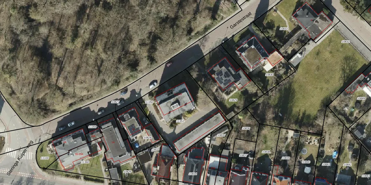 Het perceel waarop Garstestraat 11-B staat heeft een oppervlakte van 1188 m². Dit is een zeer groot perceel. De perceeloppervlakte wordt geregistreerd door het Kadaster. Gedetailleerde informatie over de maten van dit perceel kunt u vinden in het rapport Kadastrale kaart met maatvoering van Garstestraat 11-B.