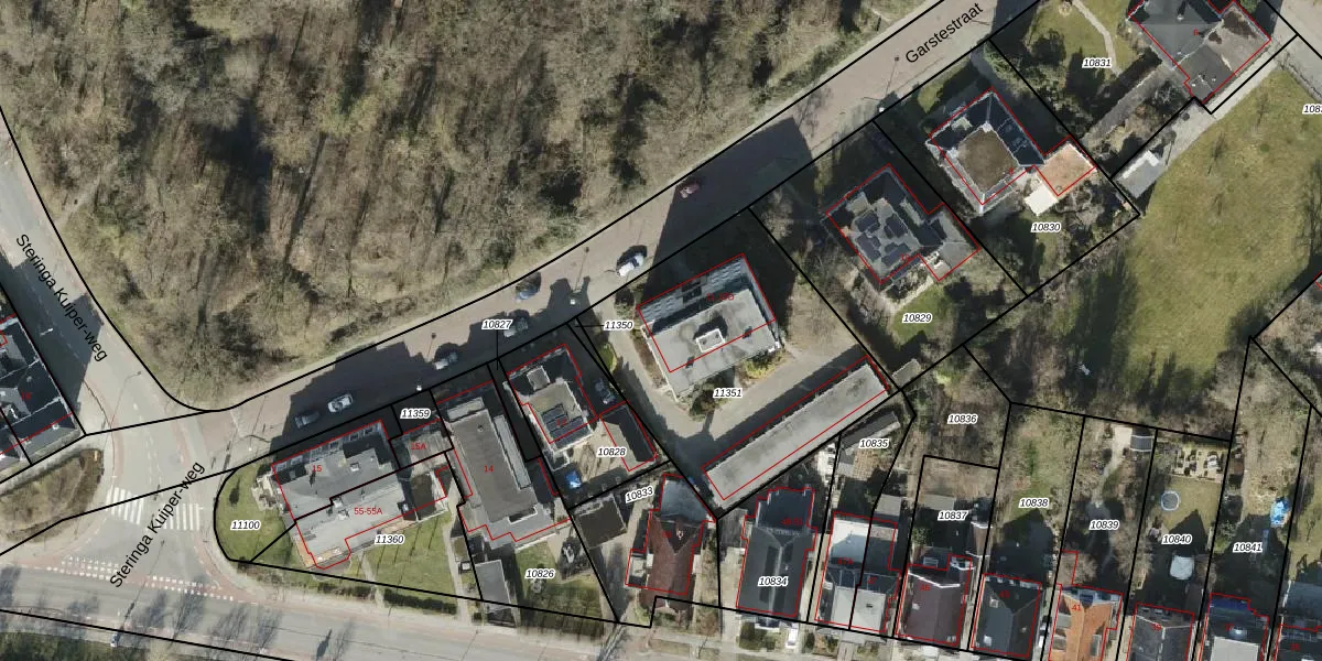 Het perceel waarop Garstestraat 12 staat heeft een oppervlakte van 1188 m². Dit is een zeer groot perceel. De perceeloppervlakte wordt geregistreerd door het Kadaster. Gedetailleerde informatie over de maten van dit perceel kunt u vinden in het rapport Kadastrale kaart met maatvoering van Garstestraat 12.