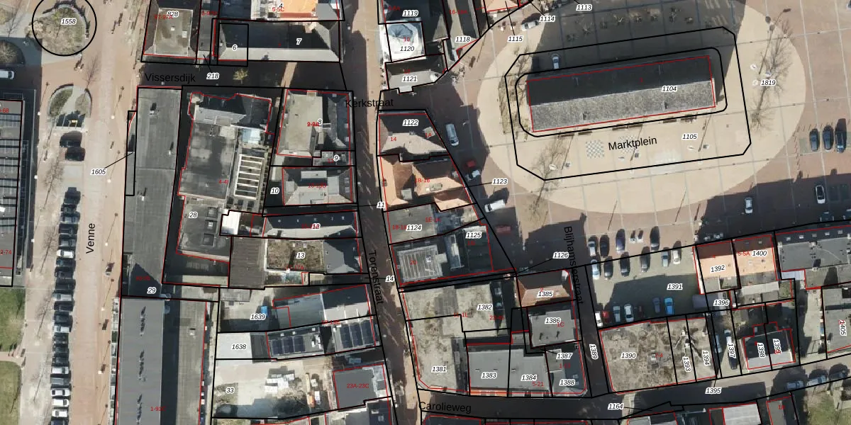 Het perceel waarop Marktplein 1-H staat heeft een oppervlakte van 153 m². Dit is een middelgroot perceel. De perceeloppervlakte wordt geregistreerd door het Kadaster. Gedetailleerde informatie over de maten van dit perceel kunt u vinden in het rapport Kadastrale kaart met maatvoering van Marktplein 1-H.