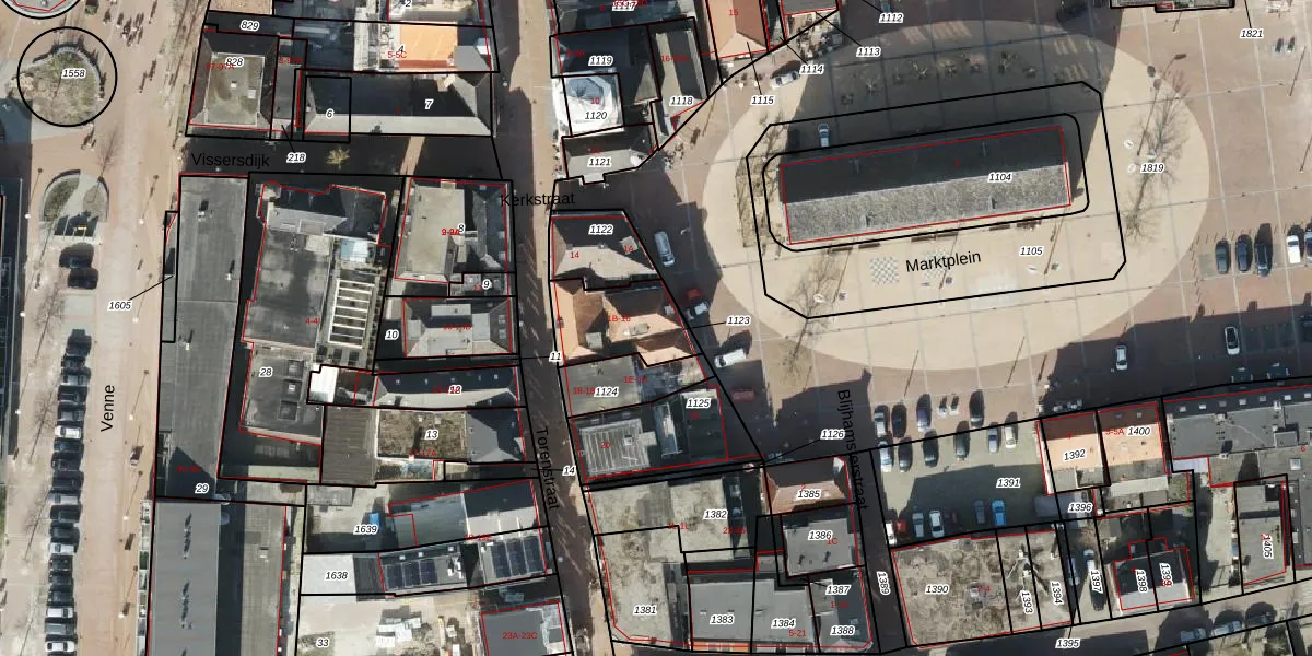 Het perceel waarop Marktplein 1-B staat heeft een oppervlakte van 238 m². Dit is een middelgroot perceel. De perceeloppervlakte wordt geregistreerd door het Kadaster. Gedetailleerde informatie over de maten van dit perceel kunt u vinden in het rapport Kadastrale kaart met maatvoering van Marktplein 1-B.