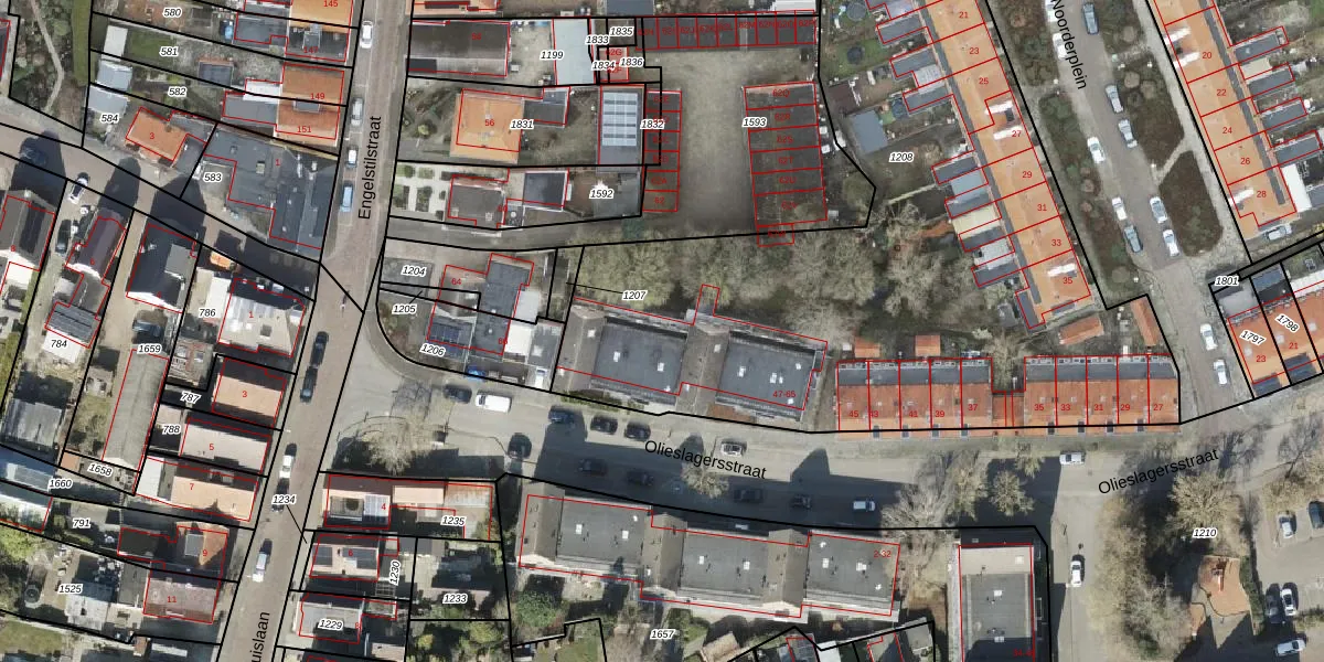 Het perceel waarop Olieslagersstraat 59 staat heeft een oppervlakte van 5170 m². Dit is een zeer groot perceel. De perceeloppervlakte wordt geregistreerd door het Kadaster. Gedetailleerde informatie over de maten van dit perceel kunt u vinden in het rapport Kadastrale kaart met maatvoering van Olieslagersstraat 59.