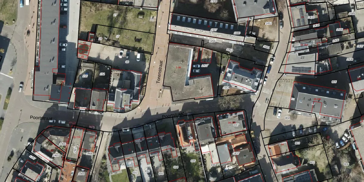 Het perceel waarop Poortstraat 9 staat heeft een oppervlakte van 836 m². Dit is een groot perceel. De perceeloppervlakte wordt geregistreerd door het Kadaster. Gedetailleerde informatie over de maten van dit perceel kunt u vinden in het rapport Kadastrale kaart met maatvoering van Poortstraat 9.