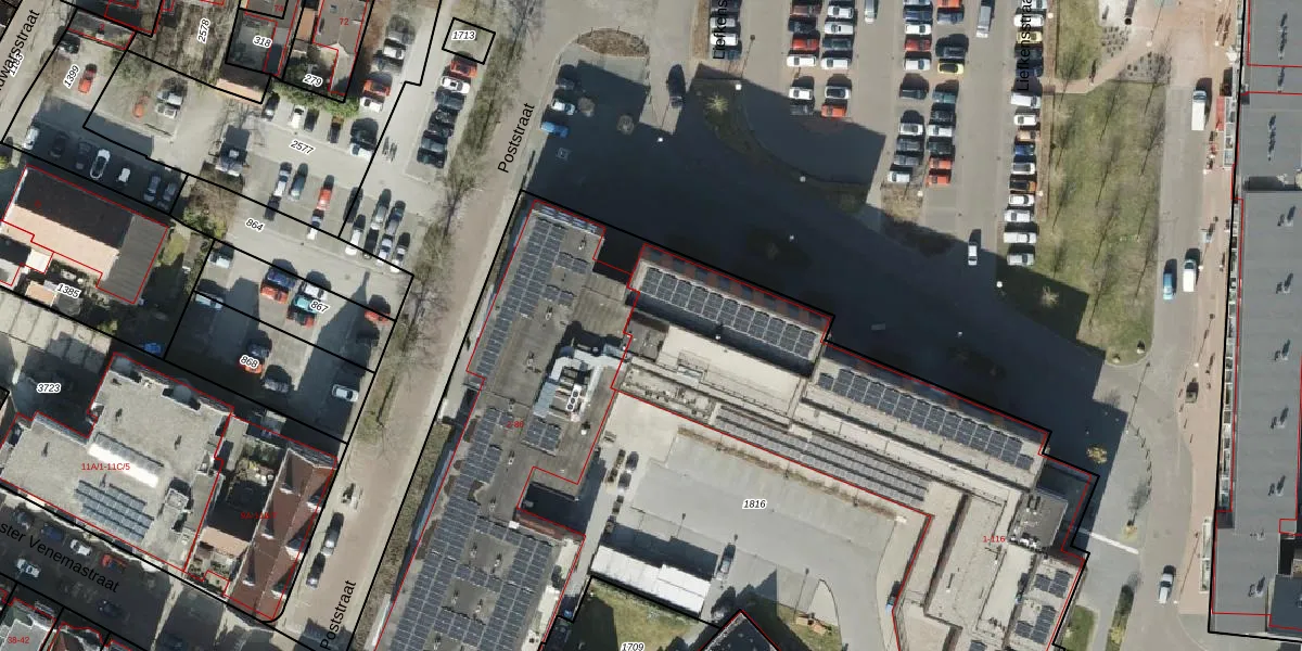 Het perceel waarop Poststraat 88 staat heeft een oppervlakte van 6385 m². Dit is een zeer groot perceel. De perceeloppervlakte wordt geregistreerd door het Kadaster. Gedetailleerde informatie over de maten van dit perceel kunt u vinden in het rapport Kadastrale kaart met maatvoering van Poststraat 88.