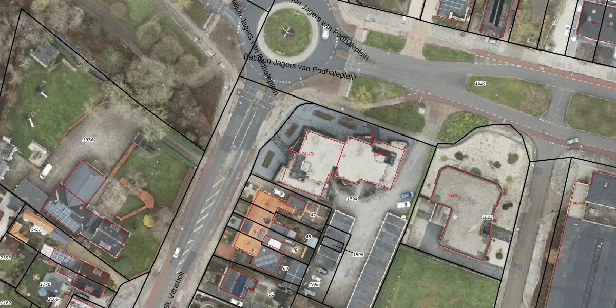 Het perceel waarop St. Vitusholt 2-A staat heeft een oppervlakte van 2033 m². Dit is een zeer groot perceel. De perceeloppervlakte wordt geregistreerd door het Kadaster. Gedetailleerde informatie over de maten van dit perceel kunt u vinden in het rapport Kadastrale kaart met maatvoering van St. Vitusholt 2-A.