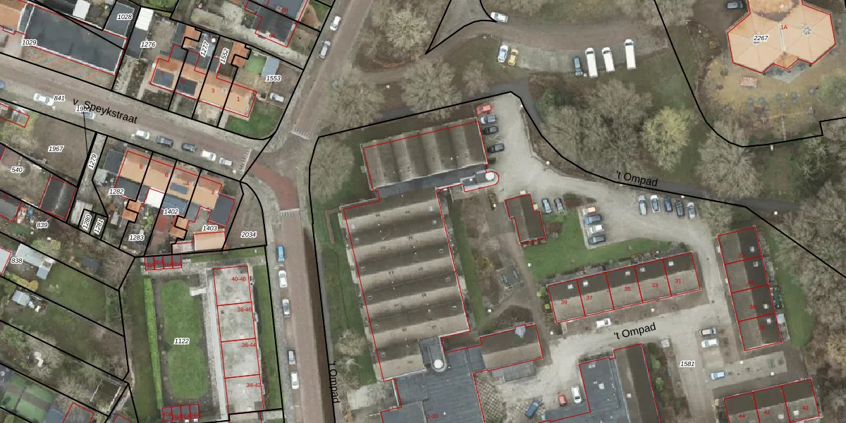 Het perceel waarop 't Ompad 15 staat heeft een oppervlakte van 1,6 ha. Dit is een zeer groot perceel. De perceeloppervlakte wordt geregistreerd door het Kadaster. Gedetailleerde informatie over de maten van dit perceel kunt u vinden in het rapport Kadastrale kaart met maatvoering van 't Ompad 15.