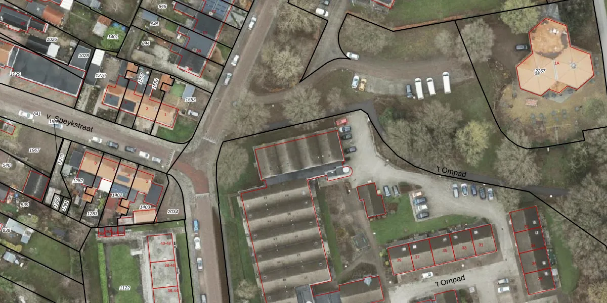 Het perceel waarop 't Ompad 2 staat heeft een oppervlakte van 1,6 ha. Dit is een zeer groot perceel. De perceeloppervlakte wordt geregistreerd door het Kadaster. Gedetailleerde informatie over de maten van dit perceel kunt u vinden in het rapport Kadastrale kaart met maatvoering van 't Ompad 2.
