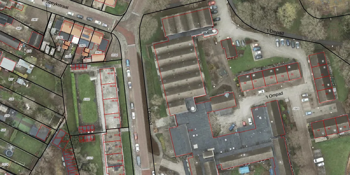 Het perceel waarop 't Ompad 23 staat heeft een oppervlakte van 1,6 ha. Dit is een zeer groot perceel. De perceeloppervlakte wordt geregistreerd door het Kadaster. Gedetailleerde informatie over de maten van dit perceel kunt u vinden in het rapport Kadastrale kaart met maatvoering van 't Ompad 23.