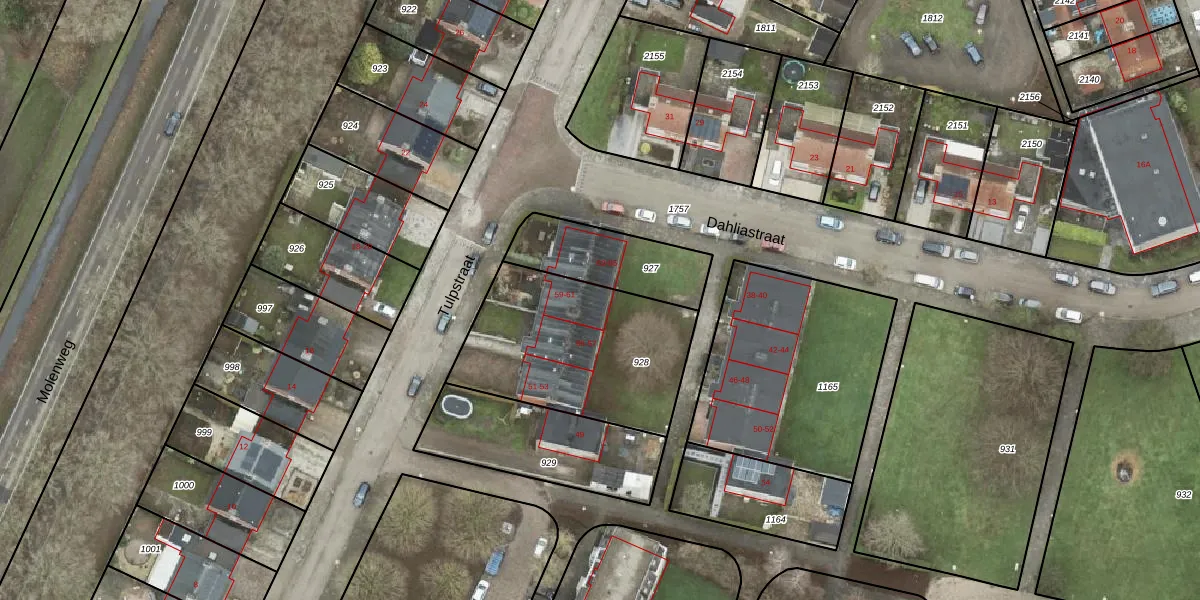 Het perceel waarop Tulpstraat 61 staat heeft een oppervlakte van 793 m². Dit is een groot perceel. De perceeloppervlakte wordt geregistreerd door het Kadaster. Gedetailleerde informatie over de maten van dit perceel kunt u vinden in het rapport Kadastrale kaart met maatvoering van Tulpstraat 61.