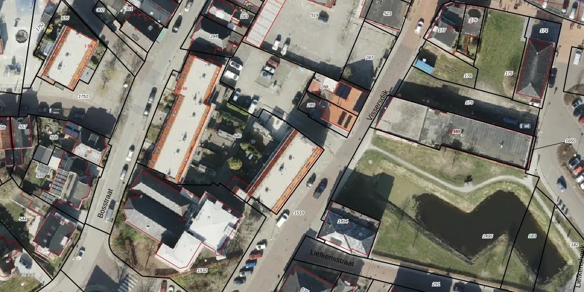 Het perceel waarop Vissersdijk 53 staat heeft een oppervlakte van 1854 m². Dit is een zeer groot perceel. De perceeloppervlakte wordt geregistreerd door het Kadaster. Gedetailleerde informatie over de maten van dit perceel kunt u vinden in het rapport Kadastrale kaart met maatvoering van Vissersdijk 53.