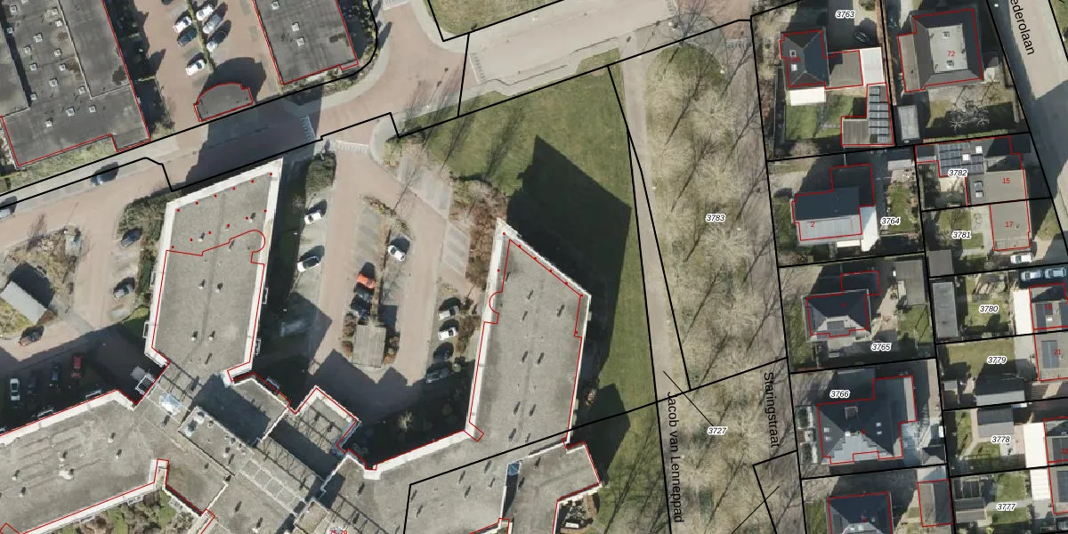 Het perceel waarop Vondellaan 75-R-134 staat heeft een oppervlakte van 1,8 ha. Dit is een zeer groot perceel. De perceeloppervlakte wordt geregistreerd door het Kadaster. Gedetailleerde informatie over de maten van dit perceel kunt u vinden in het rapport Kadastrale kaart met maatvoering van Vondellaan 75-R-134.