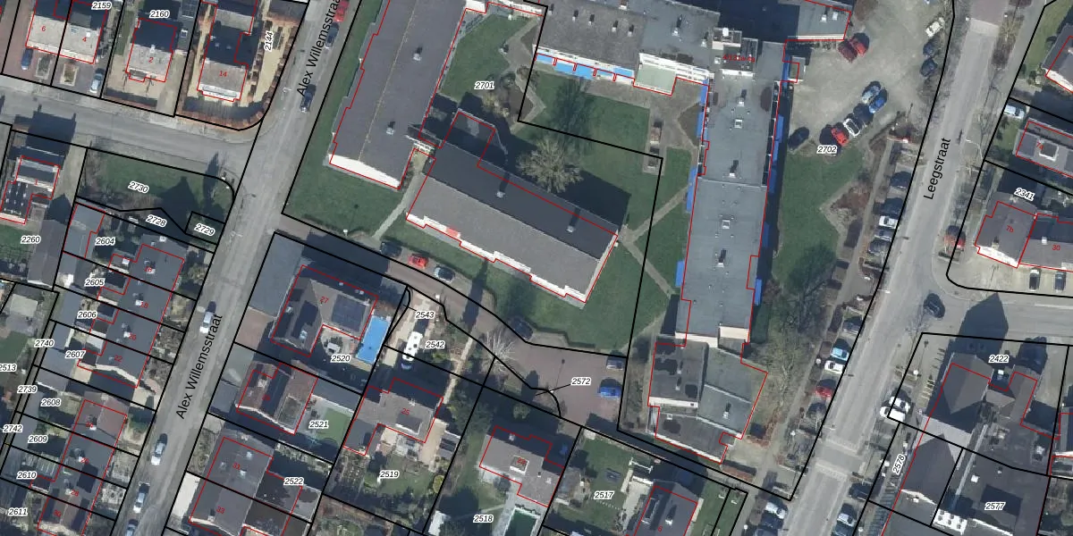 Het perceel waarop Alex Willemsstraat 21 staat heeft een oppervlakte van 3555 m². Dit is een zeer groot perceel. De perceeloppervlakte wordt geregistreerd door het Kadaster. Gedetailleerde informatie over de maten van dit perceel kunt u vinden in het rapport Kadastrale kaart met maatvoering van Alex Willemsstraat 21.